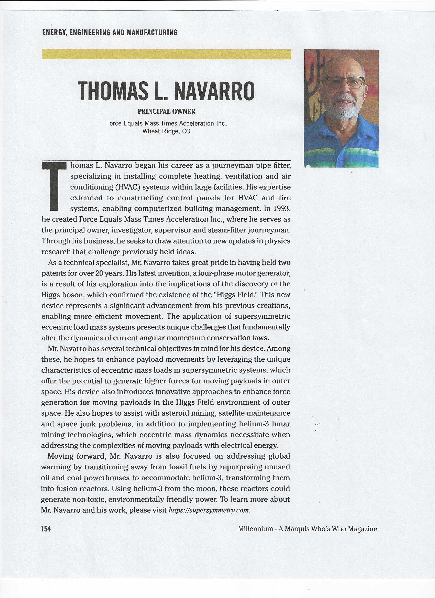 I, Thomas L Navarro would like to assist Karman Plus with moving payloads in space using the systems that move payloads in the earth’s gravitational field, tabletop, surface tension of water, submarine in water, please in this website to observe many systems moving from eccentric mass load about a center axis of rotation. These systems can move payloads in space as the entire universe lives in the Higgs field that gives mass its properties. Karman Plus is setting up in Colorado and plans to start Asteroid mining for Presious metals and alloys, and my new patent systems would be very useful to move payloads in space with electrical energy instead of rocket propulsion.